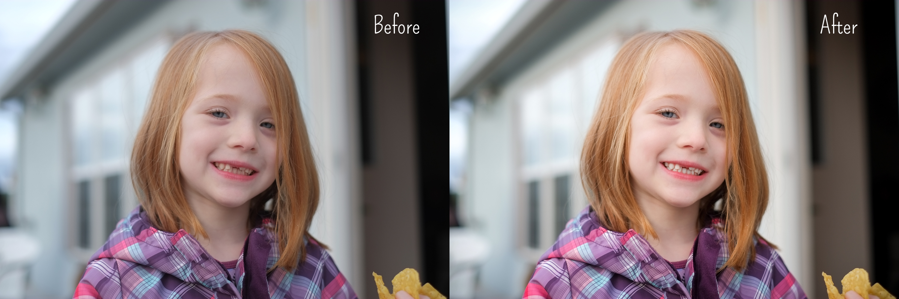 This Lightroom preset will brighten, warm and bring out detail in an overcast portrait. Once the preset is applied you can make any edits that you wish.